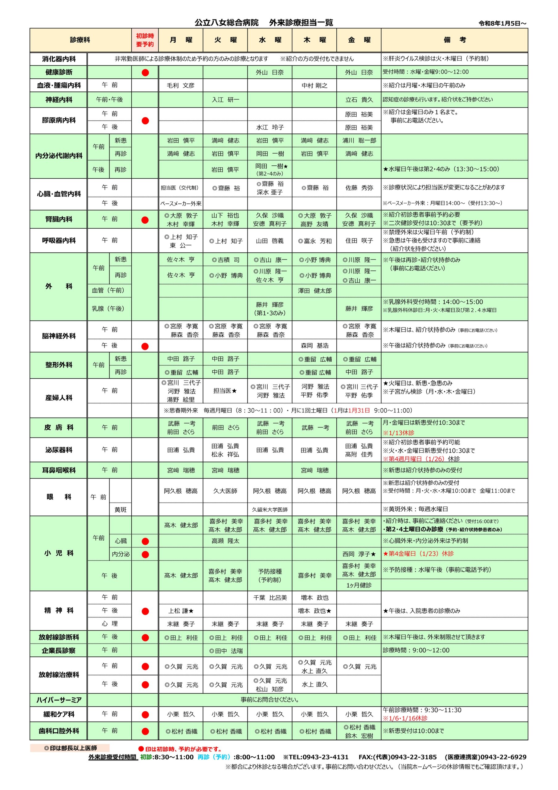 ※あらかじめ予約がある方で、日時の変更をされる場合は月~金曜日【14:00~17:00】 (代表)0943-23-4131 までご連絡ください