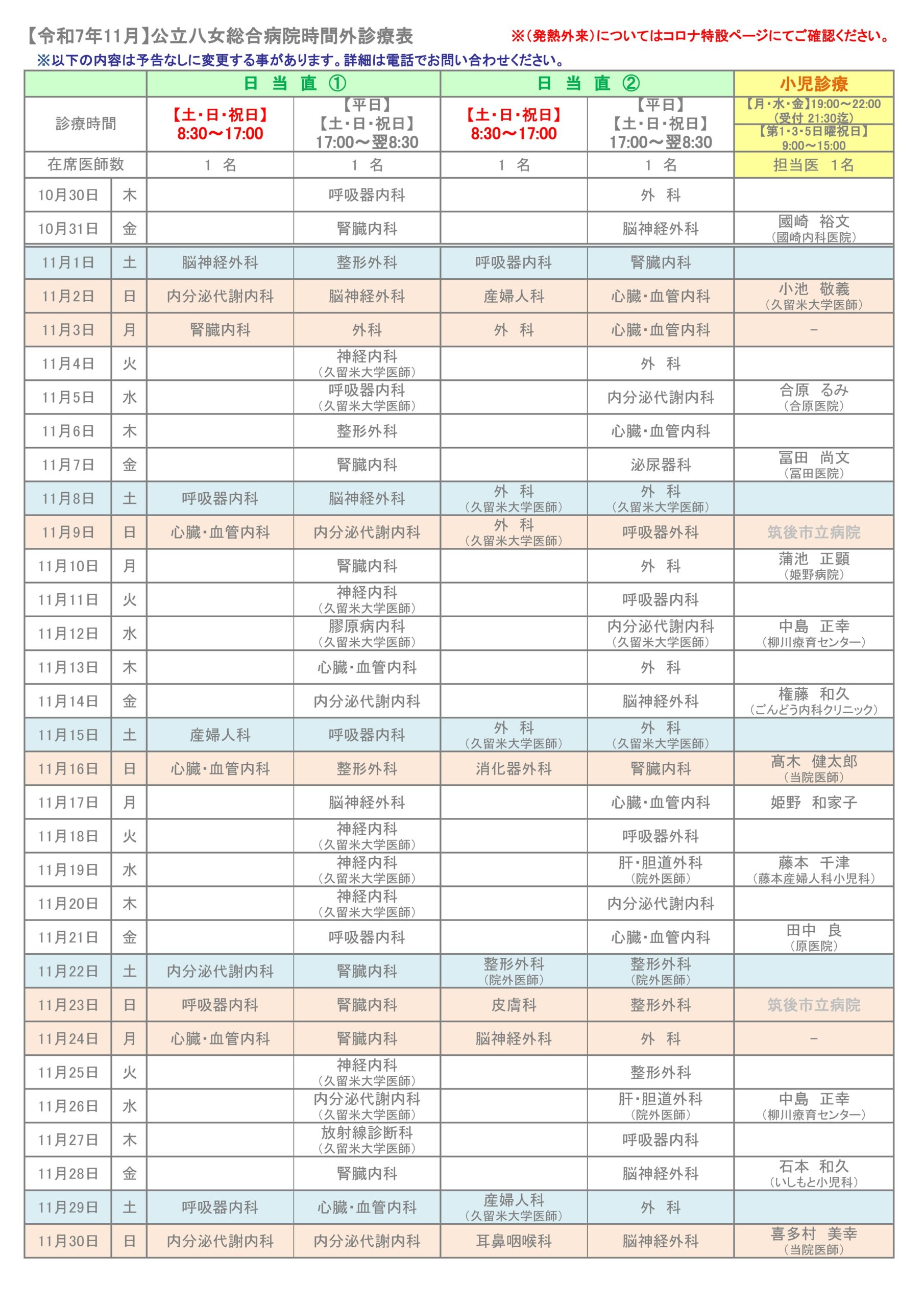 | 夜間小児救急医療 | 【月・水・金曜日】 午後7:00~午後10:00(受付は午後9:30迄) |
